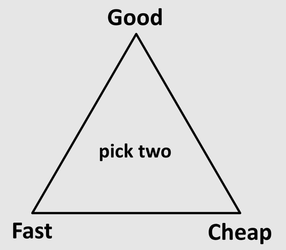 Consultants loved the "Good, Fast, Cheap – pick two" triangle. It made trade-offs feel like laws of physics and kept them in business managing your compromises.